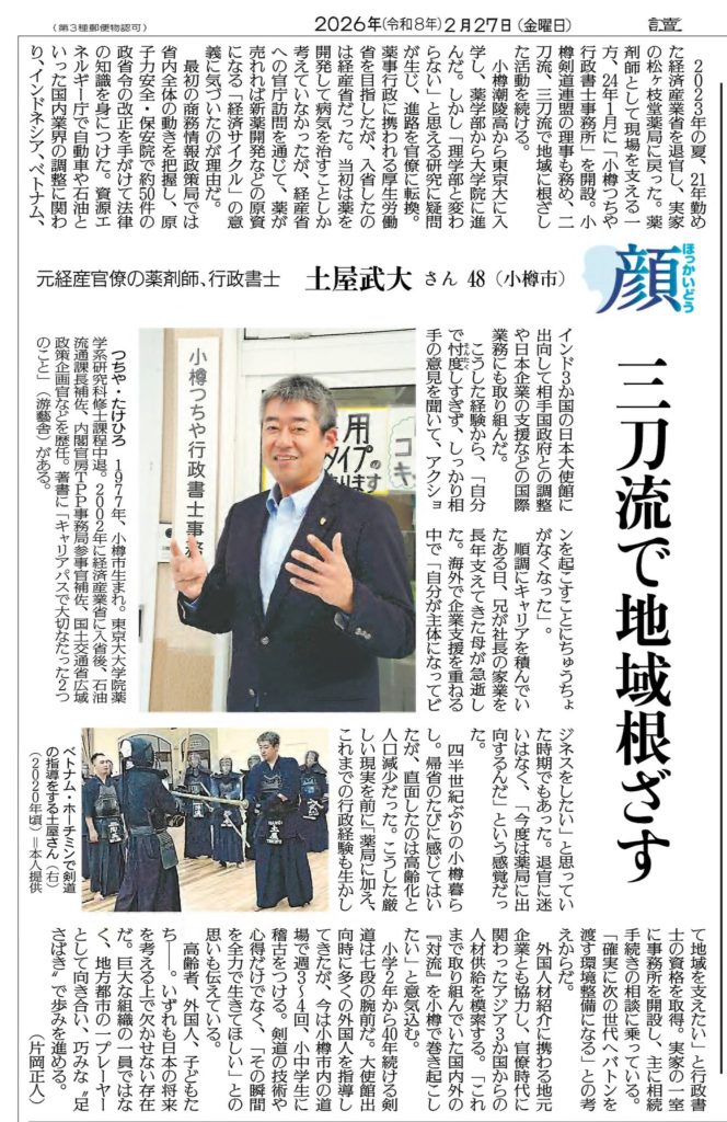 読売新聞:2026年2月27日(金)「〔顔 ほっかいどう〕三刀流で地域目指す」