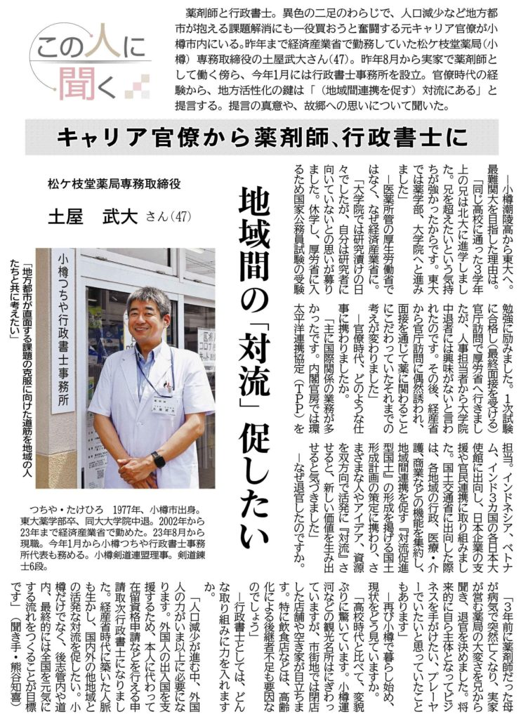 北海道新聞:2024年7月22日(月)北海道新聞「この人に聞く」