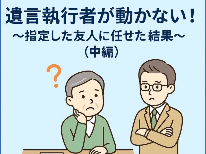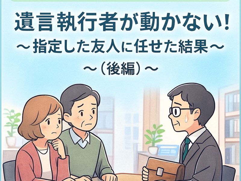 続きを読む■「信頼できる友人に任せる」が悲劇の始まりに? 相続トラブルの中でも近年増えているのが、「遺言執行者が動かない」 という相談です。 遺言書に「遺言執行者:友人のYさん」と記載し、家族以外の信頼できる人物を指定するケースは …