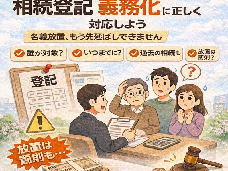 続きを読む前編では、相続登記が義務化された背景と「名義をそのままにする」ことの危険性を、中編では、相続登記義務化の具体的な内容(誰が・いつまでに・何をすべきか)を整理しました。 後編では、相続登記義務化にどう向き合い、何から手を付 …