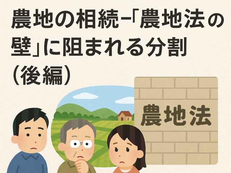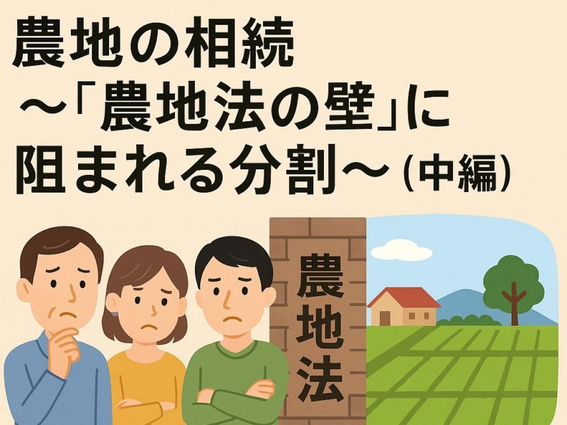 続きを読む前編では、農地が相続財産に含まれると、宅地とは違い農地法による強い規制がかかることを見てきました。中編では、「では実際に、どのような分割方法が検討されるのか」、そして「どこで現実的に詰まりやすいのか」を整理します。 ■前 …